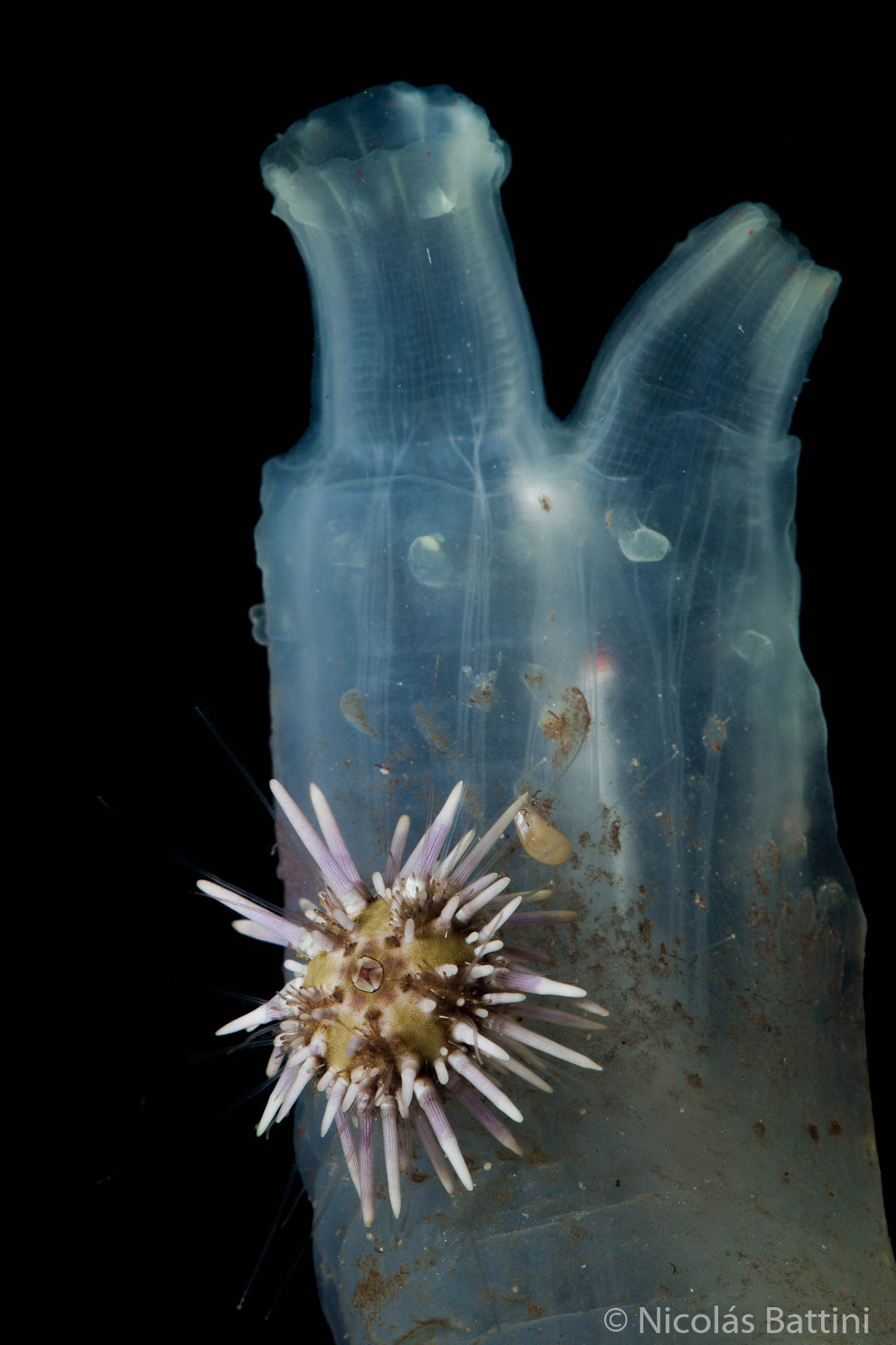 Ciona intestinalis: Exótica. Túnica translúcida, lisa y más delgada que C. robusta. Sifones sin tubérculos que pueden presentar una coloración amarilla intensa alrededor de su apertura.