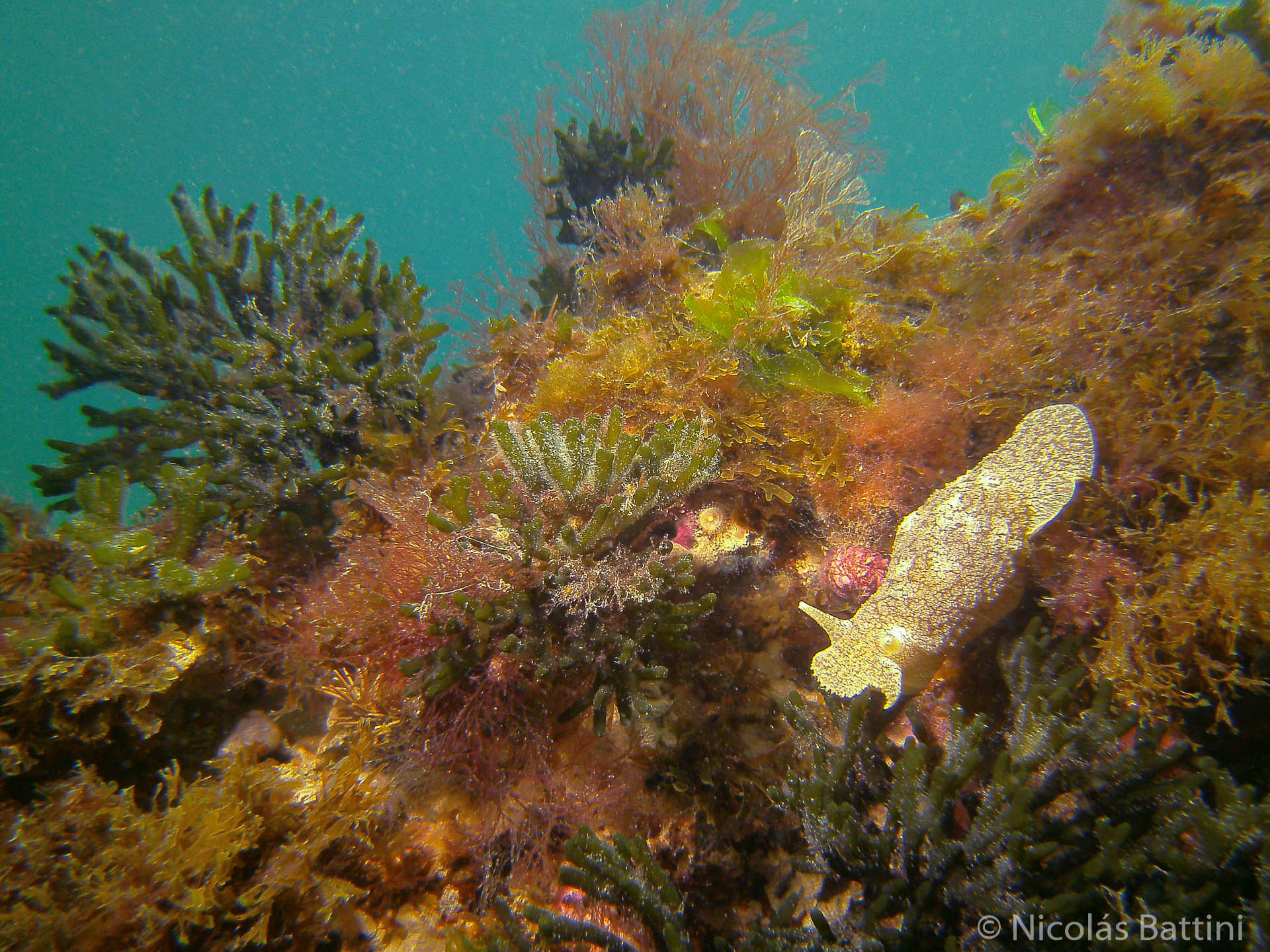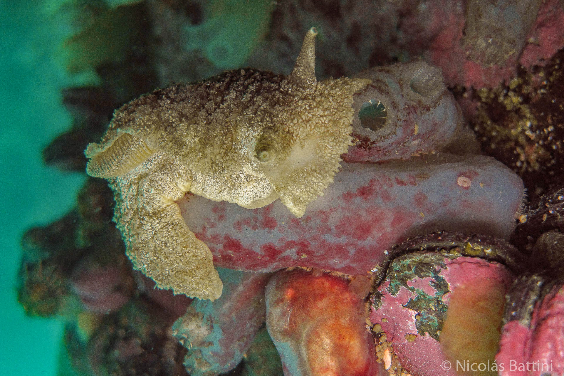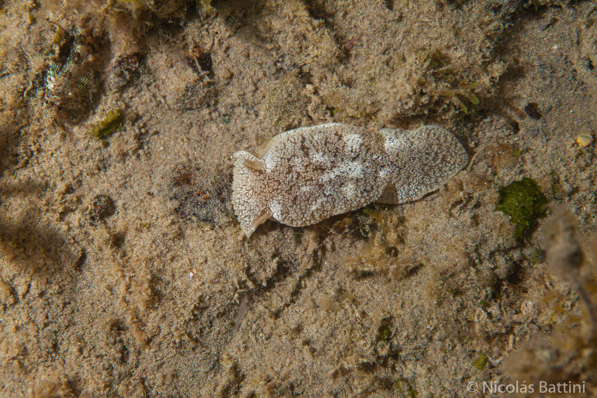 Pleurobranchaea inconspicua: Nativa. Espolón en la región caudal del pie. Cuerpo con puntos blancos, especialmente notorios en la parte posterior y dorsal del pie.